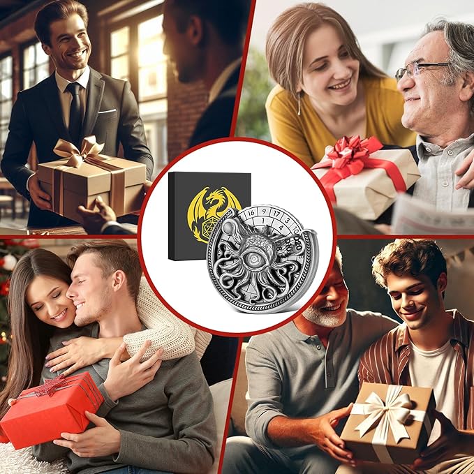 - Unique Design: This 7-in-1 metal dnd dice set roulette dice roulette spinner stands out with its innovative combination of pointers and rolling dices, providing an unparalleled thrilling experience. The spinner has an cool one-eye octopus
