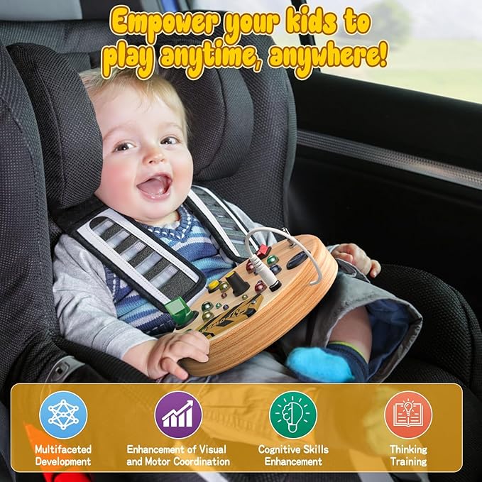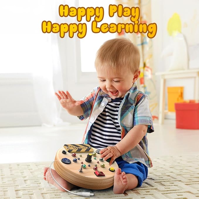 Busy Board, Montessori Toys for 1-3 Year Old - Wooden Sensory Toy with LED Light Switches, Travel Toddler Toys for 1+ Year Old Boys & Girls | Educational Gift for Kids
