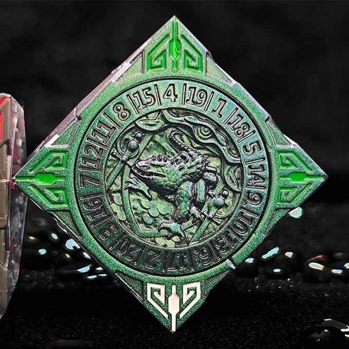 - Intricate 3D Metal Engraving: Tilt Force,Each of the six sides is meticulously crafted with stunning detail, featuring designs inspired by the Dungeons and Dragons Monster Manual. The artwork includes legendary creatures such as Cthulhu, Mimic, Minotaur, Beholder, Phoenix, and Dragon. These fantasy-themed reliefs transport players into epic battles, enhancing the immersion and excitement of every game night