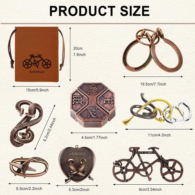 • 【EXQUISITE CRAFTSMANSHIP】Our mind puzzles for adults are made of high-grade metal, sleek to the touch, sturdy and secure, with no rough edges. Designed for durability, they can be enjoyed for years to come