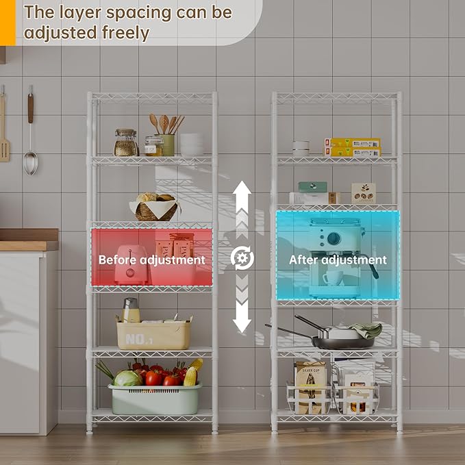 - The shelf is specially coated for protecting it from any water, rust or corrosion. Not worry to place the shelving unit in your kitchen or bathroom, easy to wipe down clean