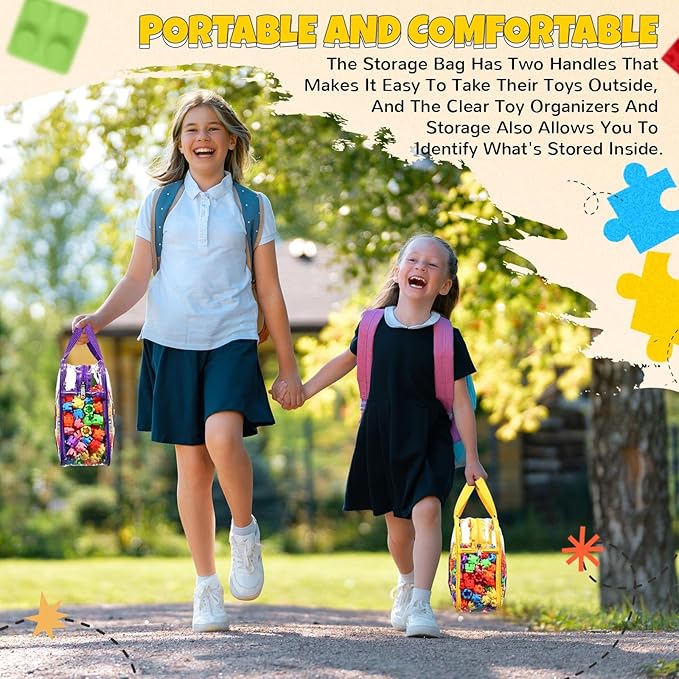 - Considerate Design: the general transparent design of the toddler zipper storage bags for kids makes it easy for kids to view and locate the items within; Toy storage bags with two handles are more robust and have a greater load bearing capability, making them ideal for transporting toys, books, and other items when going out
