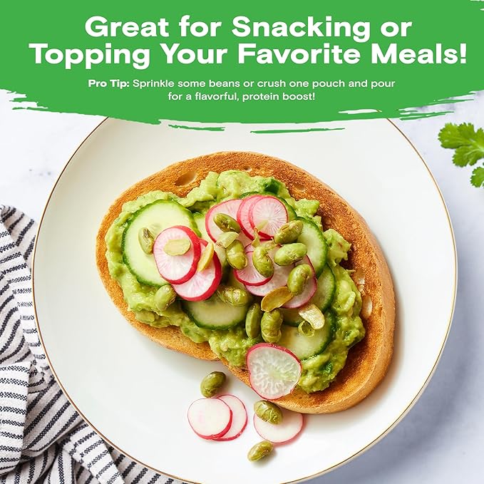 - HIGH PROTEIN SUPERSNACK - Packed with 13g of plant protein, this gluten-free, non-GMO, vegan snack features crispy roasted edamame beans for a nutritious crunch. With just 130 calories, a 10:1 calorie-to-protein ratio, and low carbs, it's a guilt-free choice that supports your wellbeing. Made with avocado oil for added health, it’s also a good source of fiber and a delicious way to fuel your day.