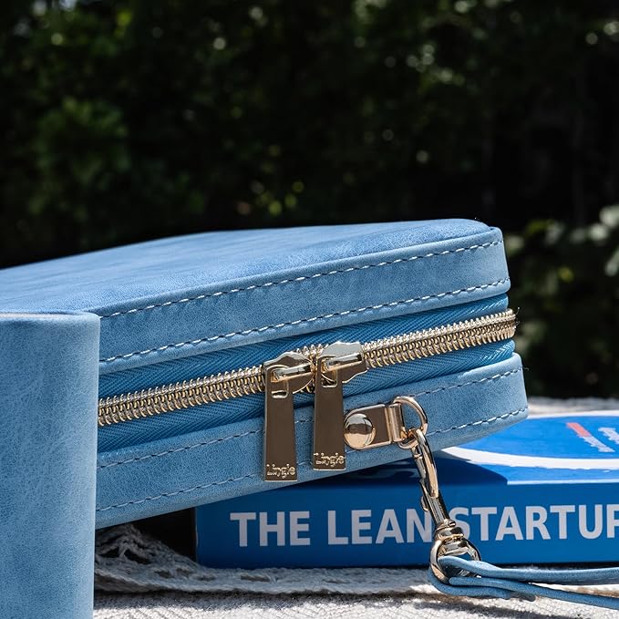 Backgammon Sets for Adults, Classic Board Game with Folding Leather Backgammon Case, Portable Travel Backgammon Game Set (Blue)
