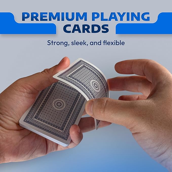 - What's in the Box? - Folding board, 9 metal pegs in 3 colors, a full deck of poker cards (3.5 x 2.6 inches) and a color guide to help new players