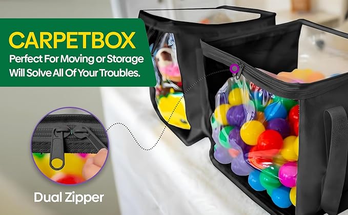 - Versatile - Our toy bins for kids organizer are ideal for a range of items; Whether you need a yarn storage organizer, toy storage bags,board games organizer or plastic storage bags for moving, Carpetbox’s clear boxes for storage are the smarter choice for people who value practicality and versatility