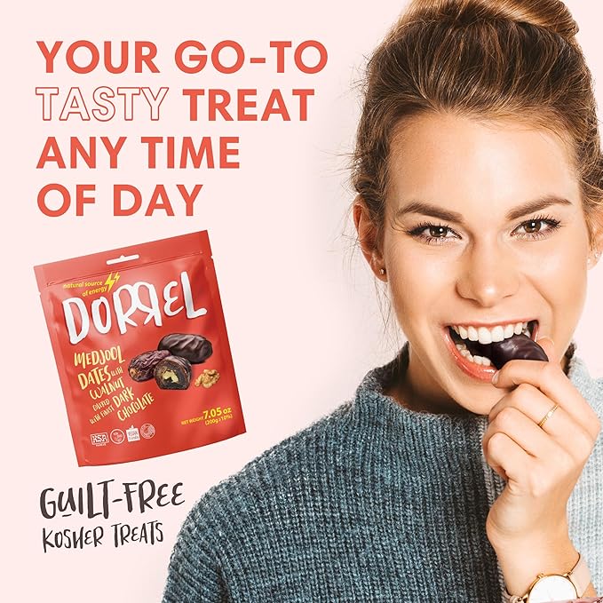 - Kosher Low Calorie Snacks: Satisfy your sweet tooth cravings with our chocolate dates. With only 90 calories per serving and no added sugars, our delicious Kosher Pareve-approved chocolate treats contribute to your overall well-being.