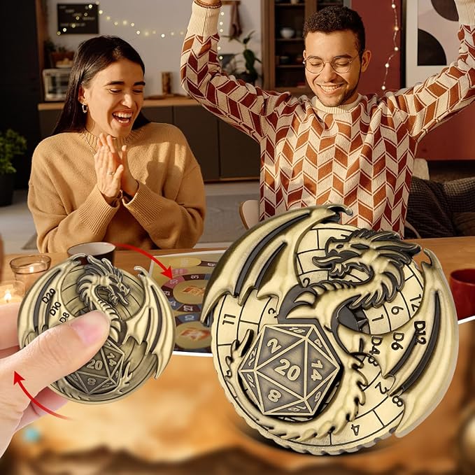 - Unique flying dragon design: This 7-in-1 metal dice set is equipped with a roulette dice rotator, featuring an innovative combination of a compass and rolling dice, with a cool flying dragon like appearance and feel, providing an unparalleled stimulating experience