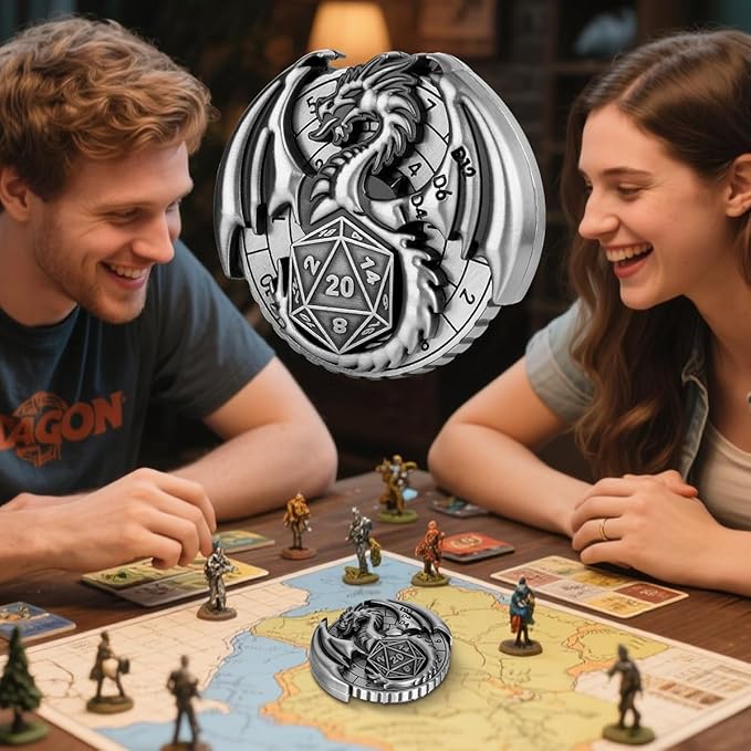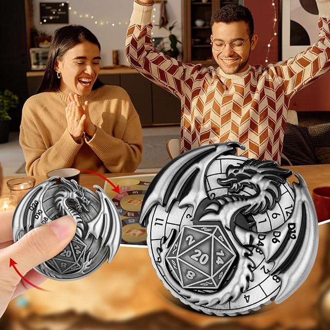 - Unique flying dragon design: This 7-in-1 metal dice set is equipped with a roulette dice rotator, featuring an innovative combination of a compass and rolling dice, with a cool flying dragon like appearance and feel, providing an unparalleled stimulating experience