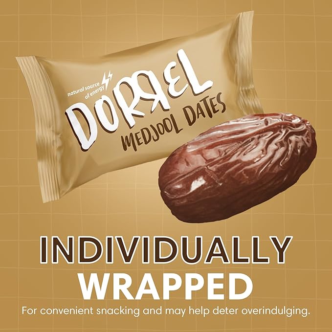DORREL - Medjool Dates, Individually Wrapped Snacks for High Energy, Nutritious Snack, Delicious, Kosher & Non-GMO Dates Individually Packaged for Convenient Handling, Pack of 1, 8.8 oz / 250 g