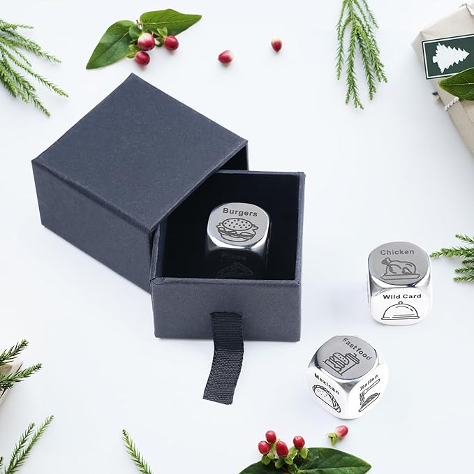 - End Dinner Debates Instantly:Tired of "Where should we eat?" arguments? Our Stainless Steel Food Decision Dice make choosing fun and effortless. Just roll the dice and let fate decide your next culinary adventure! Perfect for couples who love food but hate indecision.