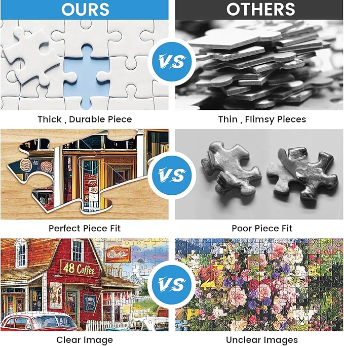 - High Quality Materials: Our 500 piece puzzle are made using high precision stamping and cutting equipment. Compared to regular machines, products made with this equipment have tighter interlocking connections between each puzzle piece. Each completed puzzle piece will not easily come apart, providing you with a smooth and satisfying assembly process