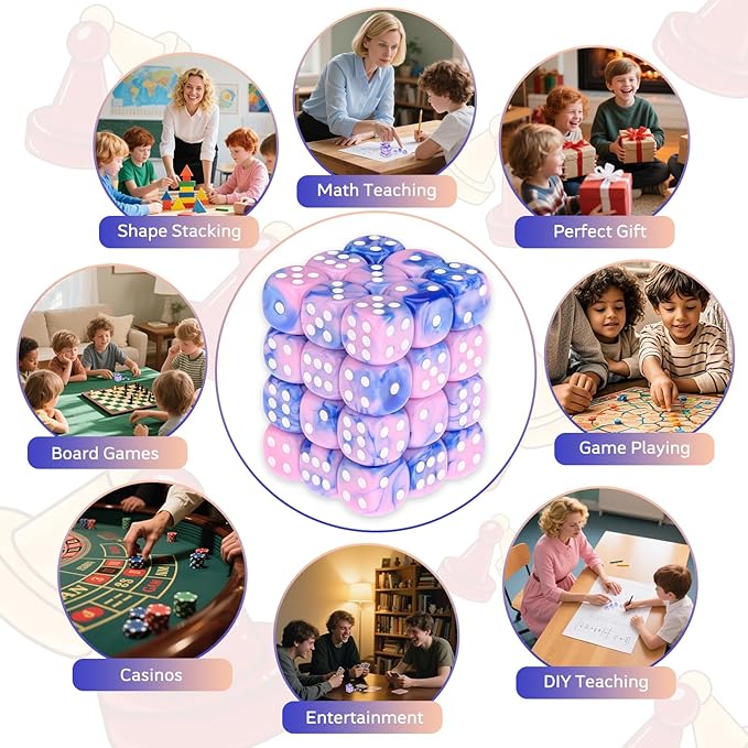 - Wide Range of Application: Board Games Dice,Durable dice set for classic games like Craps, Yahtzee, Backgammon, Boggle, Monopoly, Dungeons and Dragons, Tenzi, Liar's Dice, Farkle, Bunco, and so much more!,dice also make excellent Teacher's aids,Perfect item for playing at home with your family or at a party.