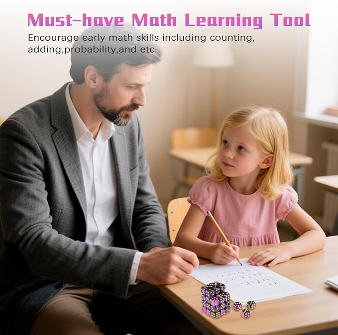 - Create&Learn: In addition to board games and birthday parties, these dice are great for classrooms. They make the ideal learning aid for math concepts such as sorting, addition, subtraction, and probability, as well as other educational activities.