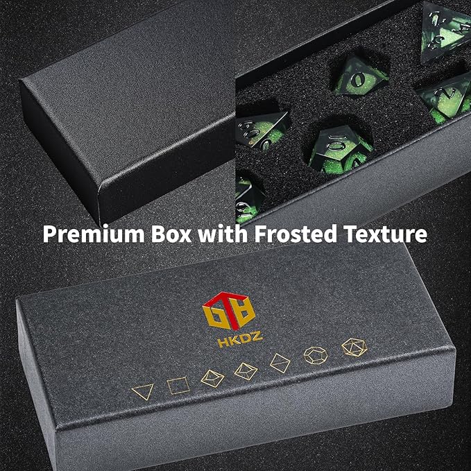 - 7-pcs DND Dice Set - This is a full set of liquid core resin dnd dice, includes D4, D6, D8, D10, D12, D20 and D% for a total of 7 dice, complete with dice box and dice bag. This resin dice set features Mage Potion elements.